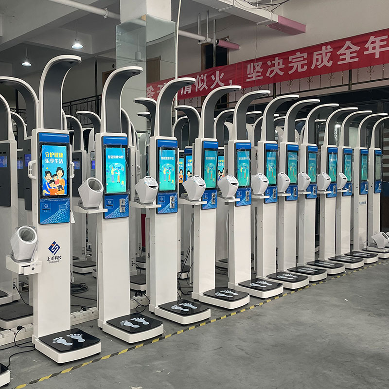 產品簡介:SH-V20智能健康一體機增強款是一款多功能健康體檢機,設備擁有19寸超大彩色液晶顯示屏,可以顯示測量結果,還可以播放視頻和圖片,做品牌和健康宣教。設備可一次性測量約20項健康指標,同時,支持各種人臉識別、刷身份證、輸入手機號等多種身份識別